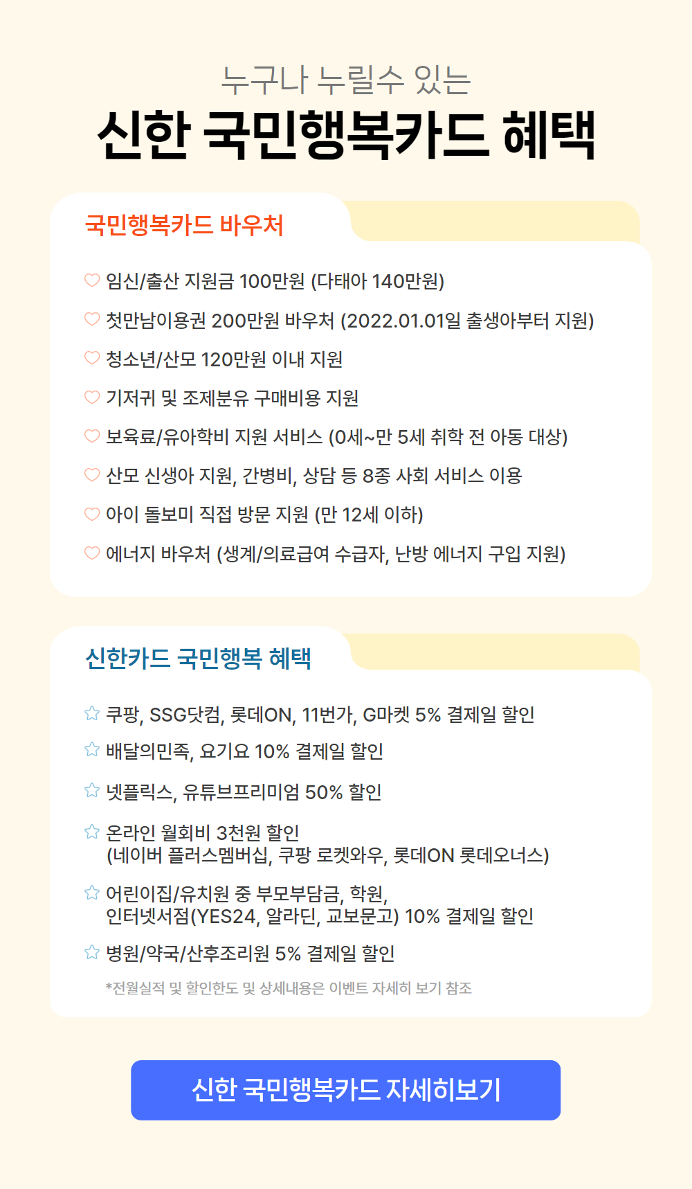 - 신한 국민행복카드 (체크카드는 행사대상에서 제외)