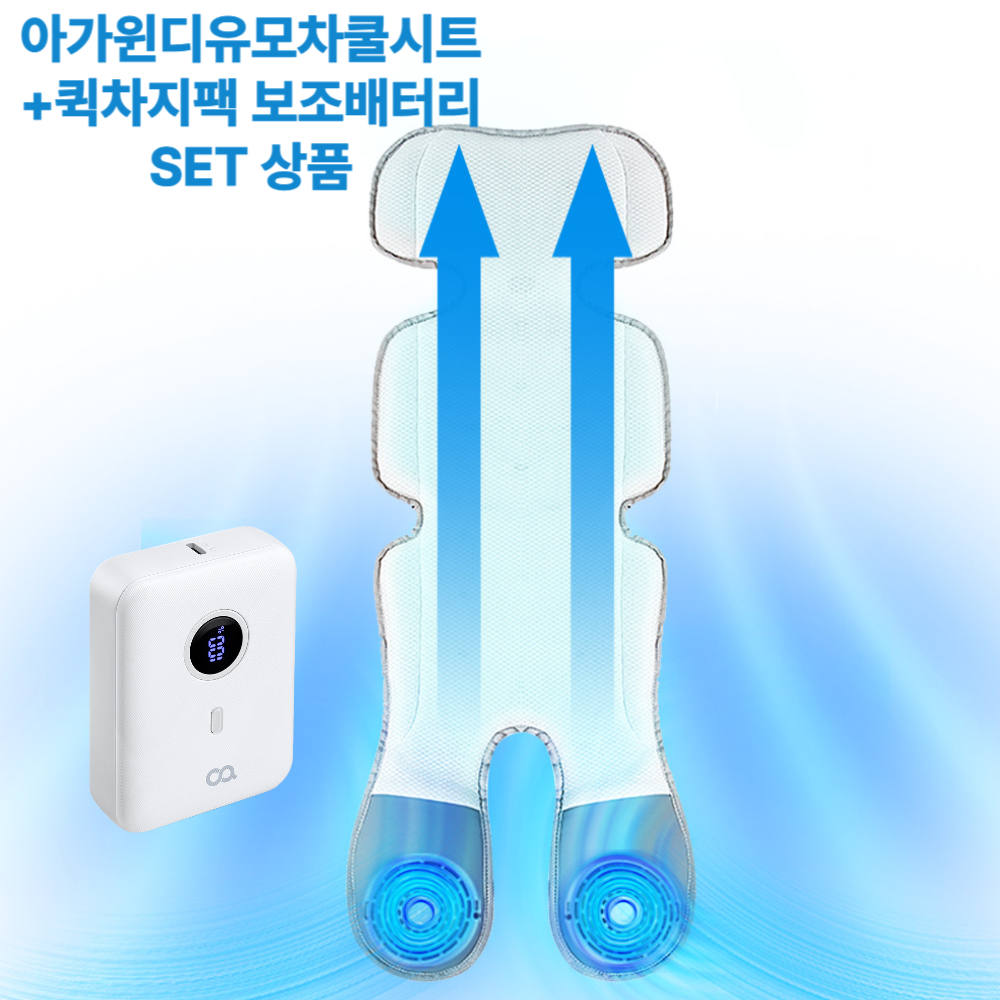 보아르 아가윈디 유모차 통풍 쿨 시트+ 퀵차지팩 보조배터리 SET상품 2세대 듀얼팬 신생아 아기 쿨링 쿨매트 라이너휴대용 미니 보조배터리 10000mAh 대용량 삼성 아이폰 고속 PD 충전