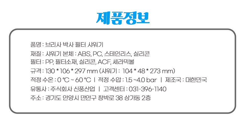 품명 및 모델명브리사 필터 샤워기/BRSWHD95