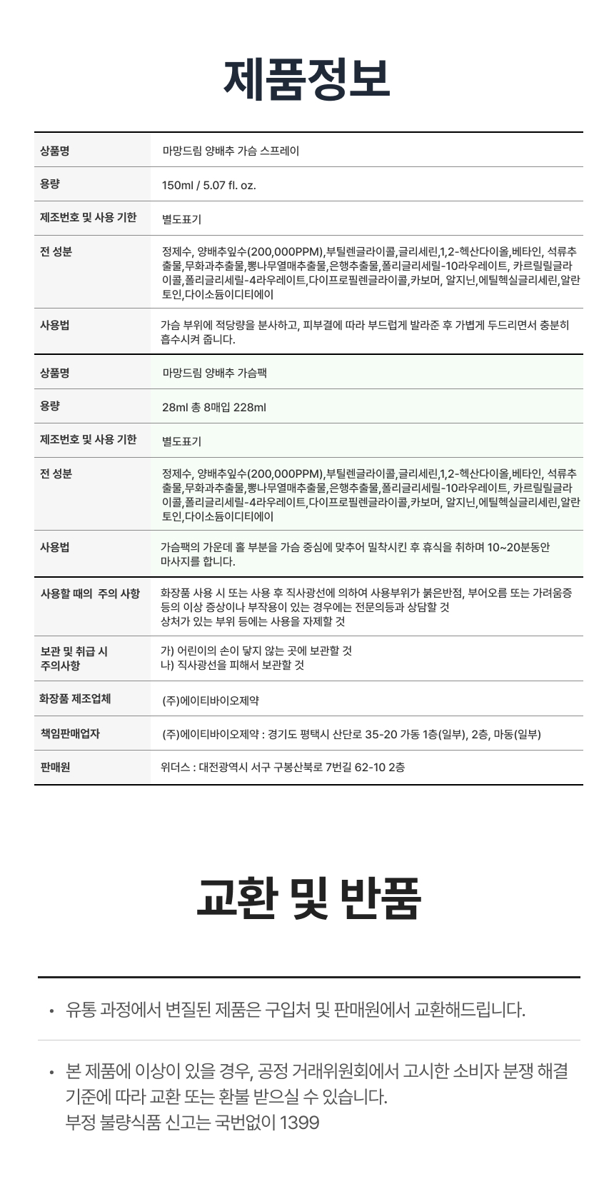 | 화장품제조업자, 화장품책임판매업자 및 맞춤형 화장품판매업자 | 상세페이지 참조 |
