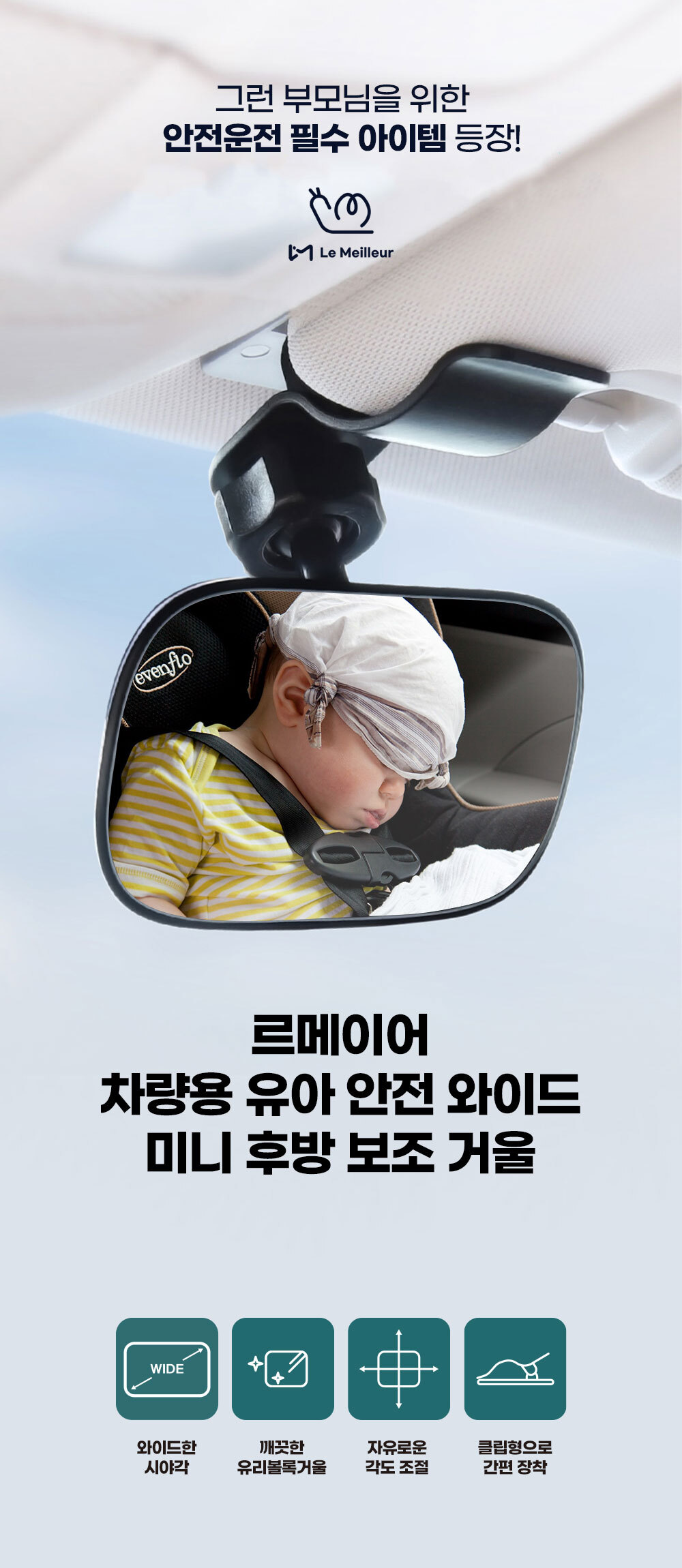르메이어 카시트 보조 룸미러 와이드 차량용 유아 후방 안전 거울
