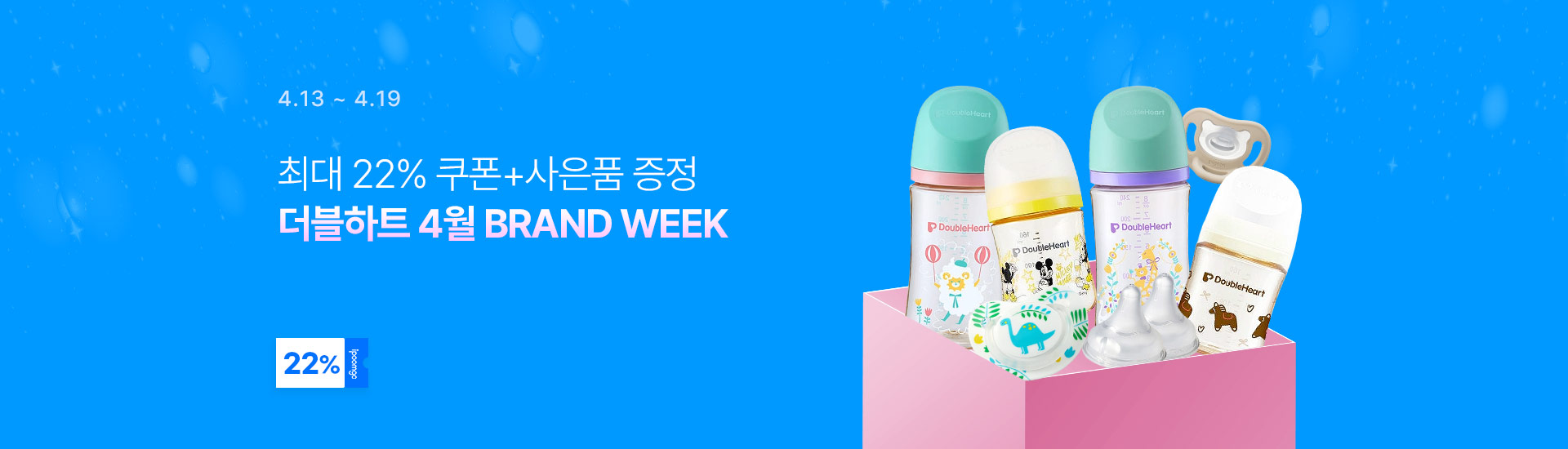 [더블하트] 모유실감 헬로베이비 말랑이 160ml 트윈세트 (젖병2+젖꼭지2)+사은품-