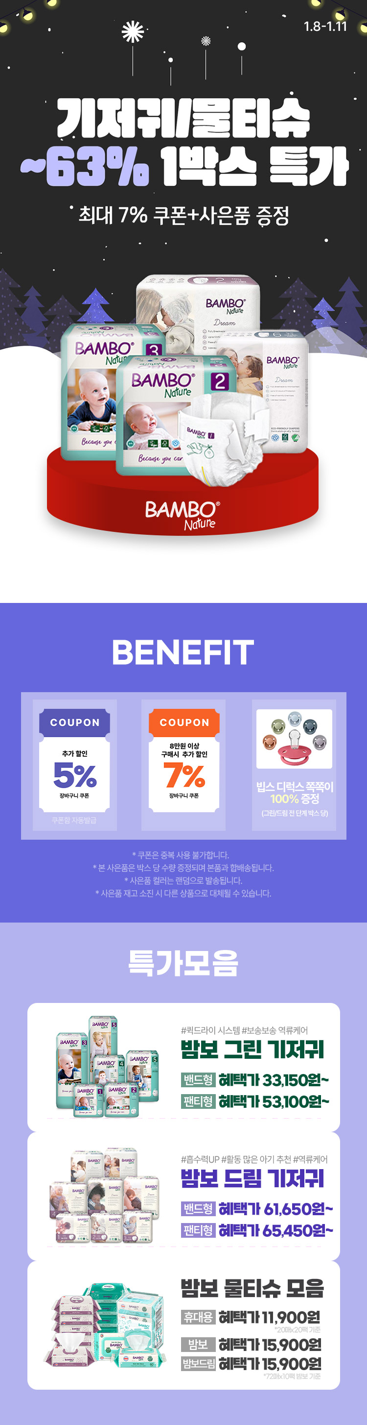 [1.8~11] [밤보네이쳐] 기저귀/물티슈 ~63% 1박스 특가 모음전