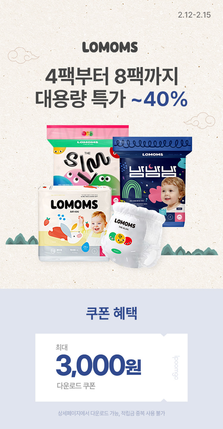 * 다운로드 쿠폰(1,000원) 로맘스 밤밤밤 팬티형 기저귀 4팩 모음