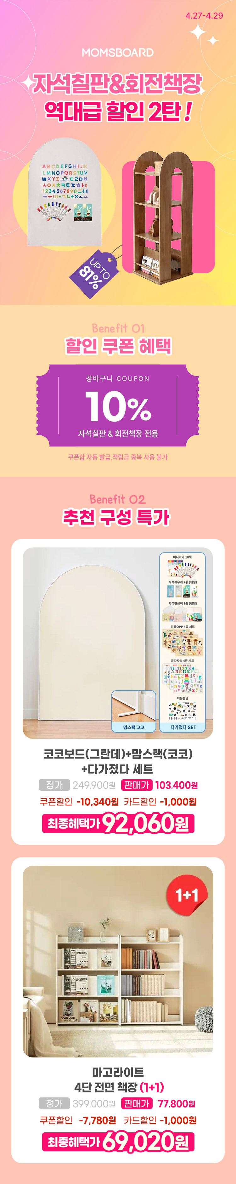 [10%쿠폰] [맘스보드] 코코보드 (울트라) + 맘스랙 (멀티) + 다가졌다 세트