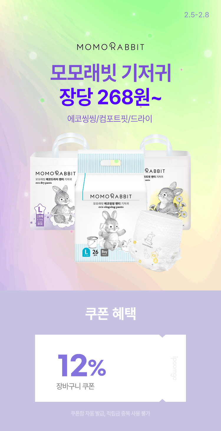 * 장바구니 쿠폰(12%) [모모래빗] 에코드라이 팬티기저귀 L (4팩) (28매 4팩 총112매)