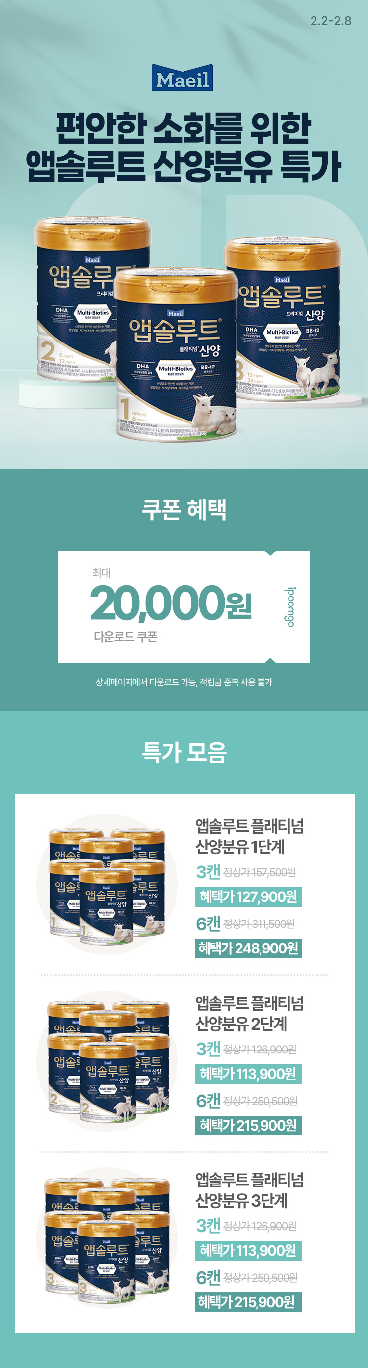 [2.2~8] [매일유업] 편안한 소화를 위한 앱솔루트 산양분유 특가