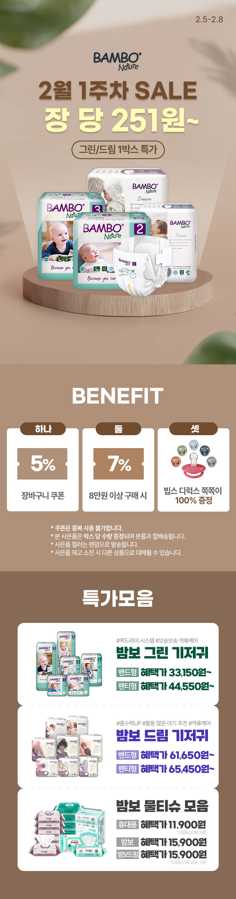 [2.5~8] [밤보네이쳐] 그린 5~6단계 밴드형 대용량 그린/드림 1박스 특가