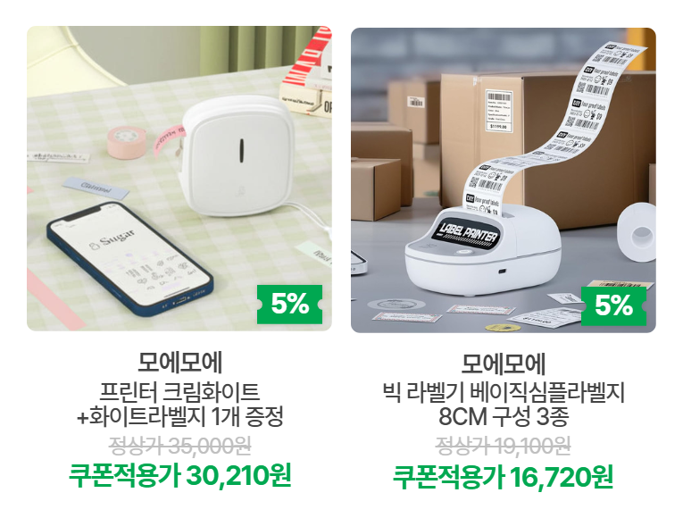• *장바구니 쿠폰5% [모에모에] HPRT 라벨프린터 본품1개(3컬러) + 화이트라벨지 증정