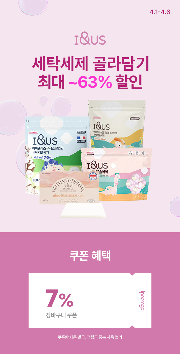 [4.1~4.6] [아이앤어스] 세탁세제 골라담기 특가 최대 ~63% 할인