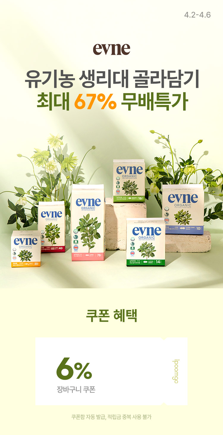 * 장바구니 쿠폰(6%) 이브네 프리미엄 유기농 생리대 슈퍼롱 오버나이트 10매x4팩