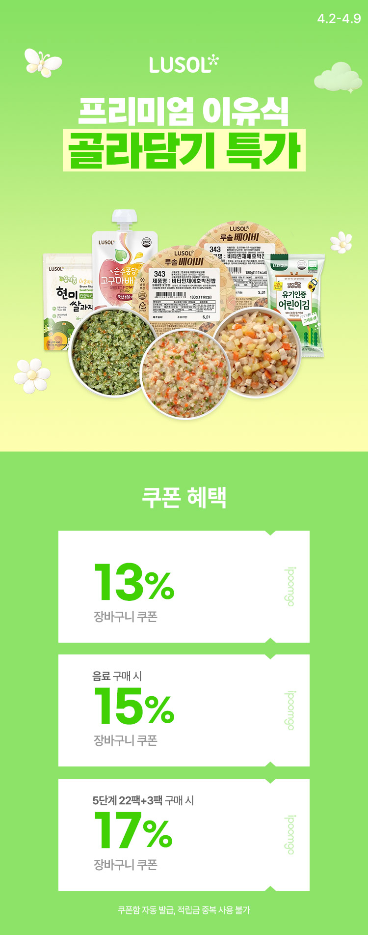 [4.2~4.9] 프리미엄 이유식 루솔 골라담기 특가 장바구니 13%쿠폰