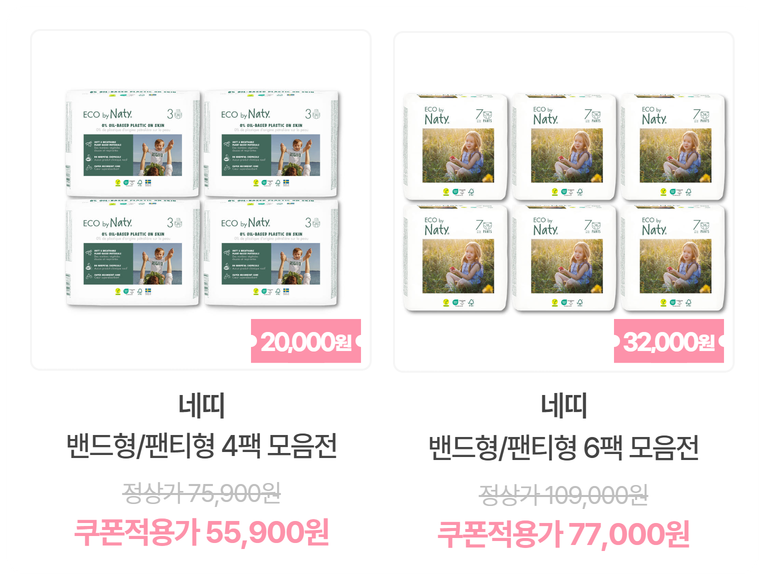* 다운로드 쿠폰(32,000원) [네띠] 기저귀 밴드형 4단계 [6팩 총156매]