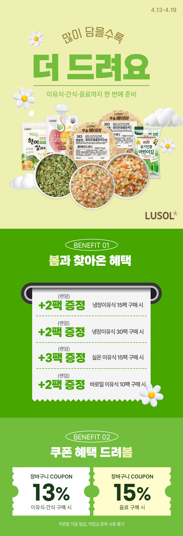 [4.13~4.19] 프리미엄 루솔 이유식 특가 👉 이유식·간식·음료까지 한 번에 준비