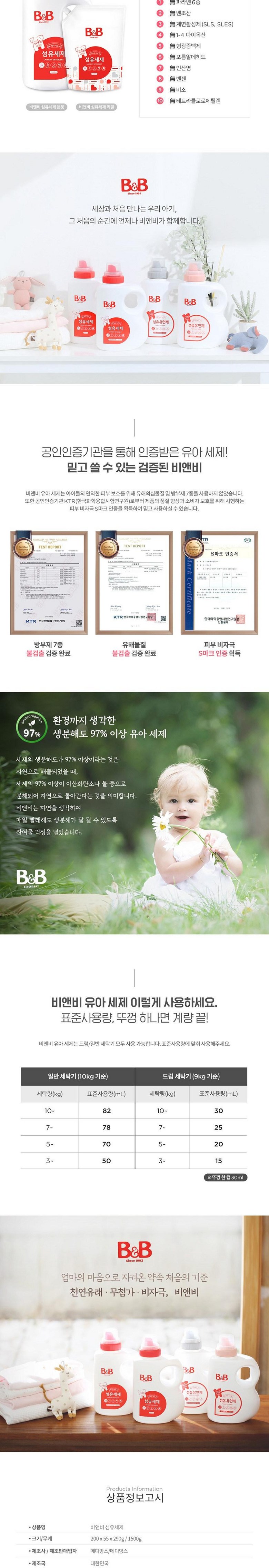 비앤비 섬유세제 용기형 1500ml [제조일자 24.09.06]